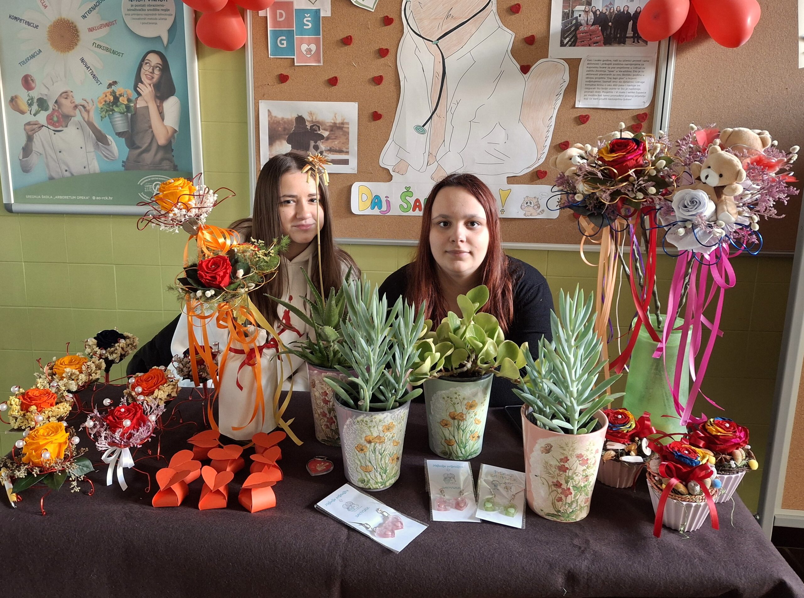 Izrađuje prigodne dekoracije i aranžmane tijekom cijele godine te, u suradnji s ostalim sekcijama, sudjeluje u uređenju školskih, poslovnih i izložbenih prostora.