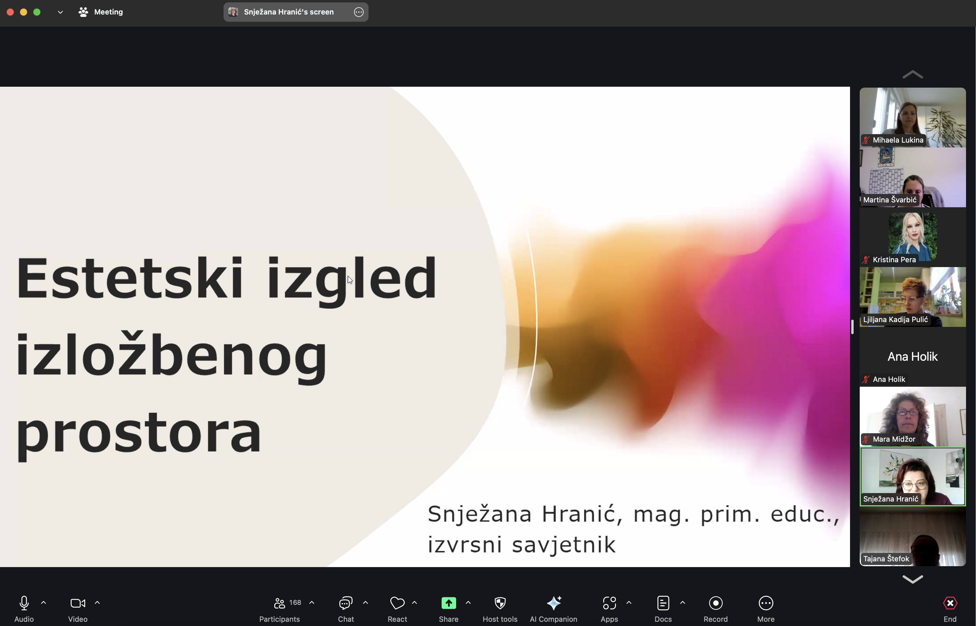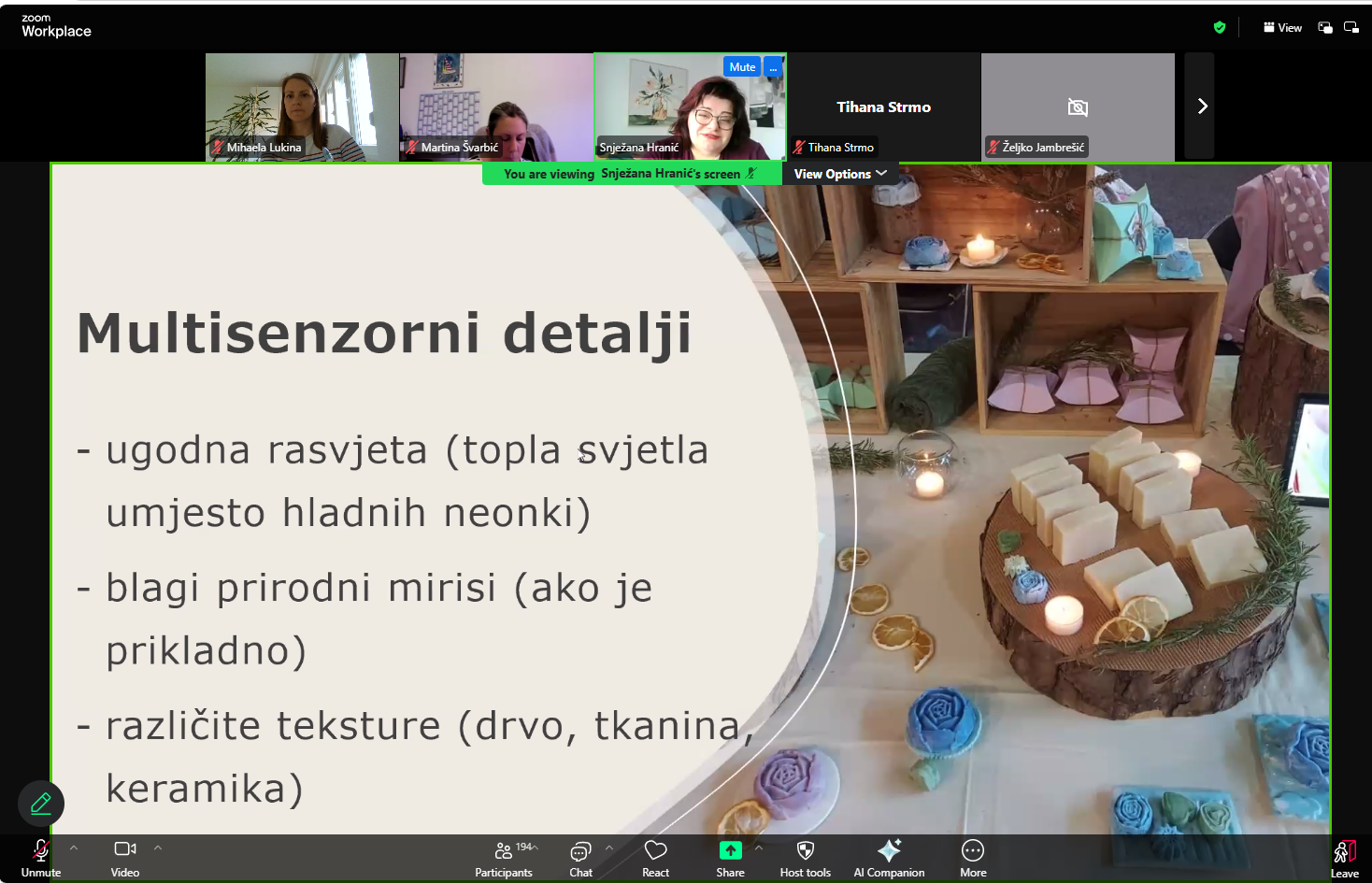 S obzirom da uskoro kreću županijske smotre, sudionici su dobili zanimljiv, ilustrativan i iscrpan osvrt na aktualnu temu estetskog uređenja izložbenog prostora. Ovo je i jedina jučerašnja prezetacija koja se referirala na kriterije i smotre, dok su ostale voditeljice kroz primjere i prakse rada svojih učeničkih zadruga prezentirale razne aktivnosti i smjerove rada i djelovanja učeničkih zadruga kroz mnoštvo korisnih i zanimljivih primjera.