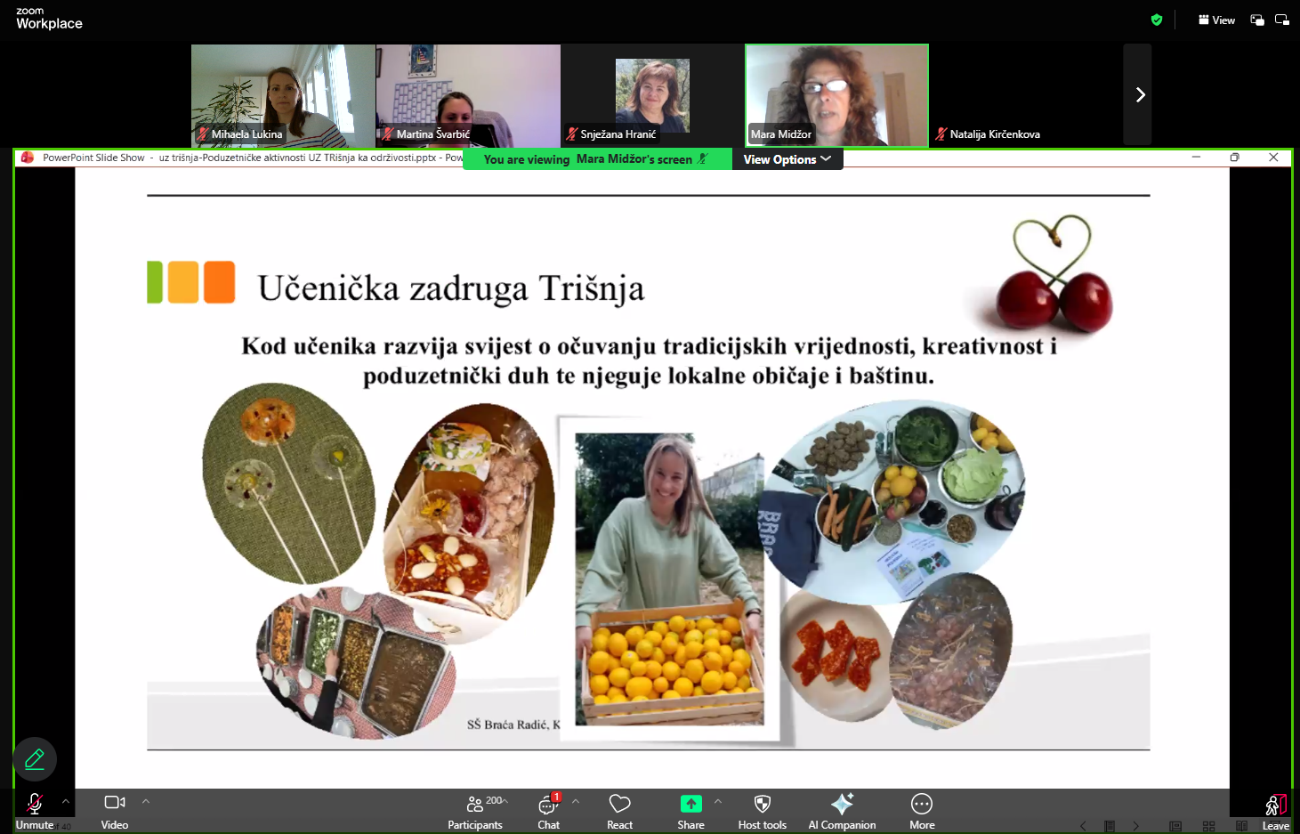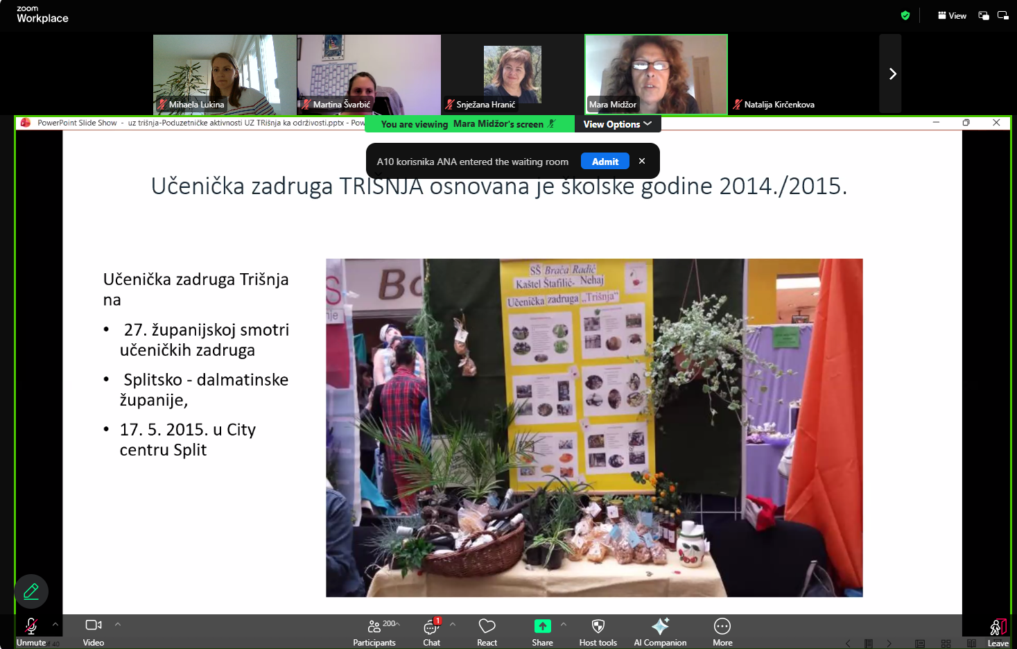 - Poduzetničke aktivnosti UZ Trišnja ka održivosti – iskustva i primjeri dobre prakse (Mara Midžor, UZ Trišnja, SŠ Braća Radić, Kaštel Štafilić)