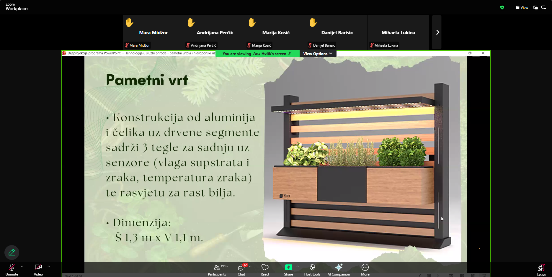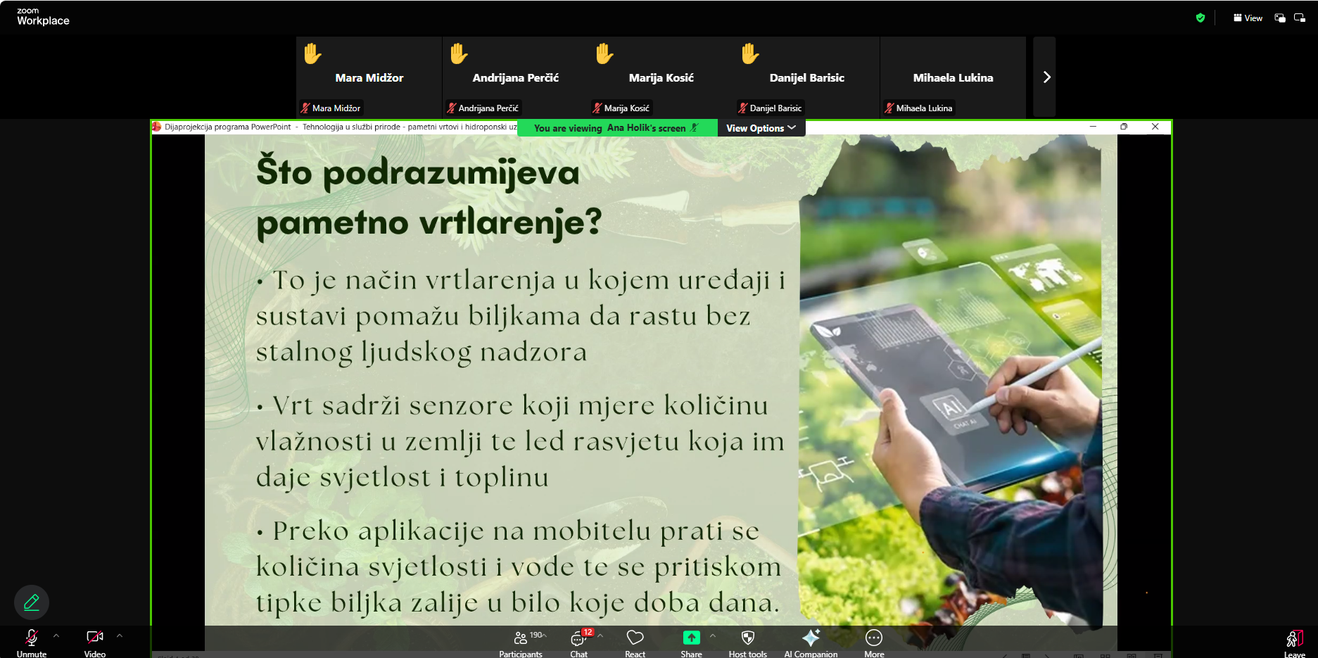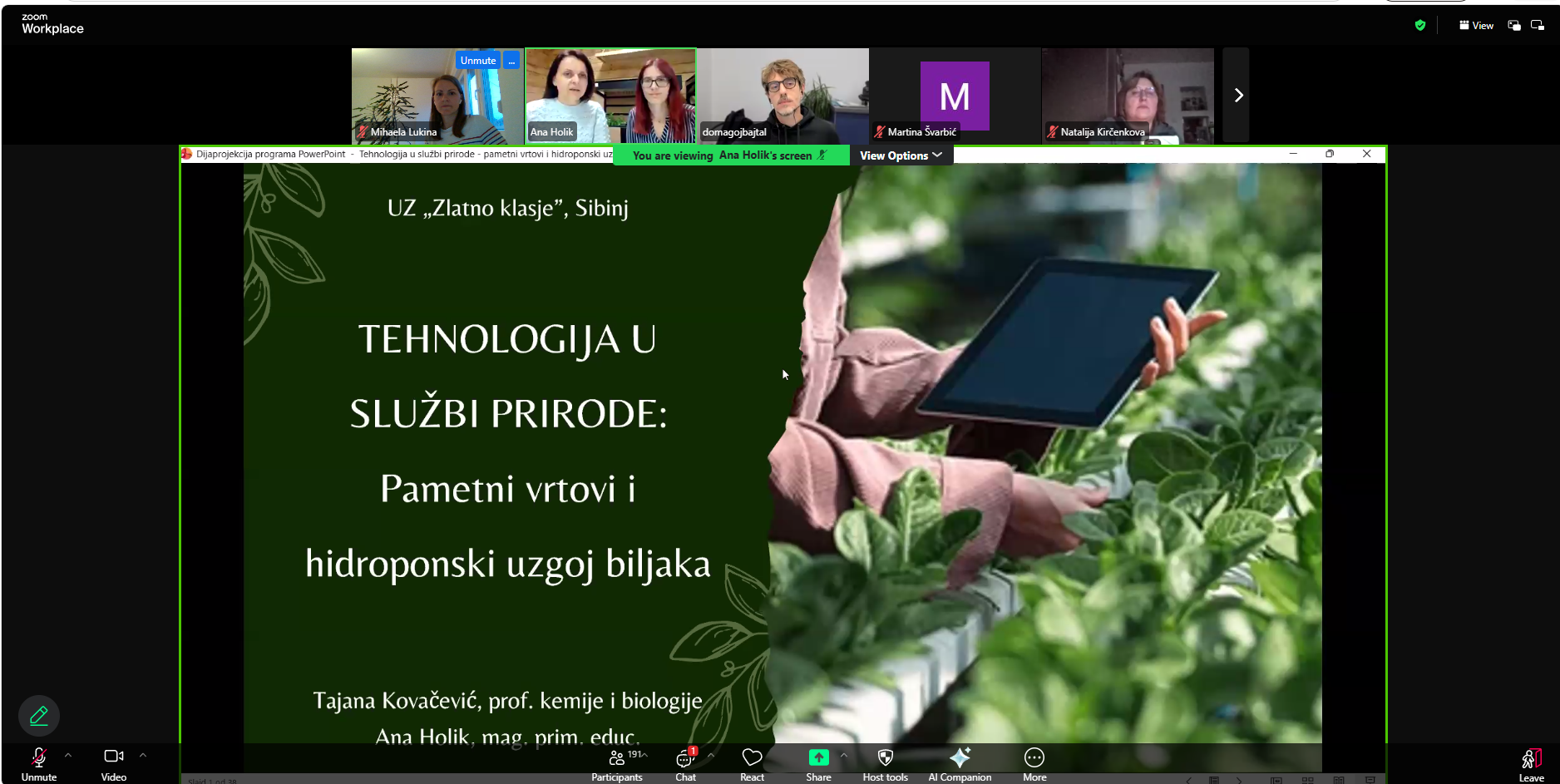 - Tehnologija u službi prirode: pametni vrtovi i hipodronski uzgoj biljaka (Tajana Kovačević i Ana Holik, UZ Zlatno klasje, OŠ Sibinjskih žrtava, Sibinj)